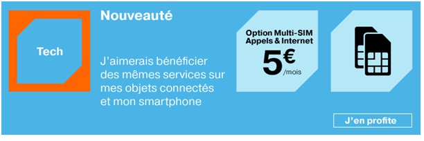 Orange lance un nouveau service pour bénéficier des mêmes services sur vos objets connectés et votre Smartphone. Pour en profiter, il vous suffit d’activer l’option Multi-Sim facturée 5€ par mois. Cette dernière vous permet d’utiliser votre forfait mobile avec un second équipement 3G /4G pour passer, recevoir des appels et surfer sur internet.