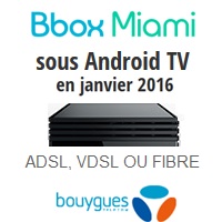 La mise à jour de la Bbox Miami avec la version Android TV est actuellement en cours de test chez les collaborateurs de Bouygues Telecom. Dès le mois novembre 2015, une version bêta test destinée aux abonnés Bbox Miami ADSL ou Fibre sera accessible aux 5000 premiers inscrits qui souhaitent découvrir Android TV avant son lancement officiel en janvier 2016. Pour participer, il suffira de vous inscrire en ligne sur le blog Bbox Miami.