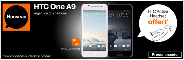 La livraison est prévue à partir du 13 novembre pour tout précommande de ce HTC ONE A9 chez Orange ou Sosh, et recevez en cadeau un HTC Active Headset (valeur 39€, offre valable du 20 au 30/10/2015 inclus). Dans le cadre d'une portabilité de numéro, Orange vous rembourse 5€ par mois pendant 6 mois avec les forfaits M6 Mobile et 5€ pendant 12 mois avec les forfaits Zen, Play et Jet.