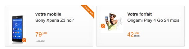 La remise immédiate proposée par Orange pour l’achat du Sony Xperia Z3 est valable jusqu'au 03 Novembre 2015, 23h59. Ce Sony est en promo à 79.90€ au lieu de 149.90€ avec la souscription à un forfait Origami Play 4Go à partir de 42.99€ par mois avec engagement de 24mois.