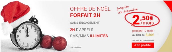 - Le forfait illimité + 1Go sans engagement est en promo à 12.50€ au lieu de 14,50€/mois. Cet abonnement est idéal pour ceux qui appellent beaucoup et se connectent régulièrement à Internet via leur mobile. L'offre intègre les appels, SMS et MMS illimités et un accès Internet de 1Go en 4G (au-delà le débit est réduit).