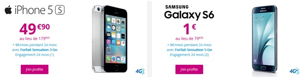 La seconde vente flash concerne le Samsung Galaxy S6 avec la souscription simultanée à un forfait Sensation 5Go à 39.99€ par mois avec engagement de 2 4 mois.
