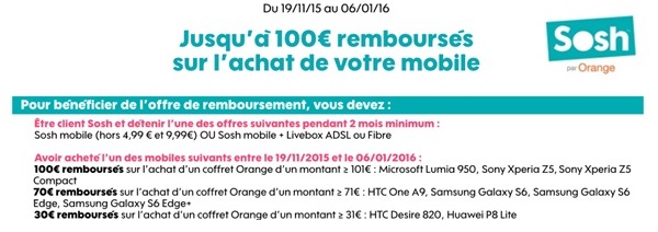 100€ remboursés sur le Microsoft Lumia 950, Sony Xperia Z5 et Sony Xperia Z5 Compact avec un forfait Sosh !