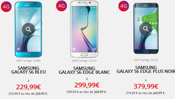 -299.99€ au lieu de 369.99€ pour le Galaxy S6 Edge,