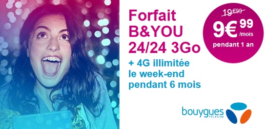Bouygues Telecom : Les forfaits B&You avec 3Go de data et plus en promo !