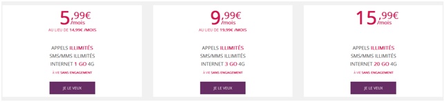Et enfin, si vous souhaitez profiter encore plus de vos sites web préférés, cet opérateur commercialise le même forfait 24/24 avec 20Go d’internet mobile en 4G au prix de 15.99€ par mois à vie également !