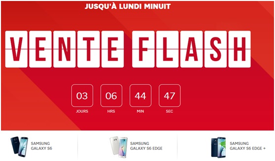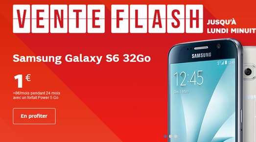 La vente flash proposée par SFR pour l’achat du Samsung Galaxy S6, S6 Edge et S6 Edge + est disponible ce Week-end entre le 15 et 18 janvier minuit avec la souscription simultanée à un forfait Power 5Go.