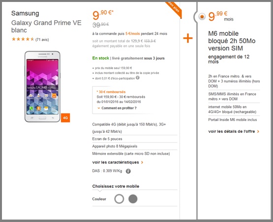 Le forfait bloqué M6 Mobile 2h + 1Go est au prix de 14.99€ avec engagement de 12 mois. Cet abonnement comprend 2h de communications par mois vers les fixes et mobiles de France Métropolitaine, des DOM et de certains COM (Guadeloupe, Saint Barthélemy, Saint-Martin, Guyane, Martinique, Réunion, Saint-Pierre-et-Miquelon et Mayotte) ainsi que les SMS et MMS illimités. Pour vos connexions à Internet, cette offre intègre un volume de 2Go en 4G par mois (bloqué et rechargeable) ainsi qu’un accès illimité à tous les hotspots Wifi d’Orange. L’accès à Inside M6 mobile est inclus et permet l’accès à la chaîne TV Replay 6 Play,aux vidéos (dont Video On Demand) et la navigation sur les services du portail.