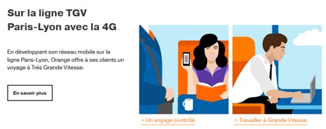Orange annonce le déploiement de la 4G sur toute la ligne de TGV Paris-Lyon et c’est le premier opérateur à offrir un réseau 4G en continu sur cette ligne (à l’exception des tunnels). Les voyageurs détenteurs d’un forfait 4G chez Orange peuvent désormais profiter d’un réseau 4G tout au long de leur trajet en train et accéder à leurs emails, visionner des vidéos, surfer sur le net à très grande vitesse. Orange poursuit également le déploiement de la 4G sur d’autres lignes de TGV, notamment Paris-Lille pour début Juillet 2016.
