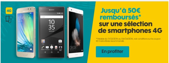 Ces offres de remboursement jusqu’à 50€ sont valables jusqu’au 06 Avril 2016. Les réductions sont compatibles pour toute souscription à un forfait illimité Sosh avec 3Go ou 5Go de data et à condition de rester client minimum 2 mois.