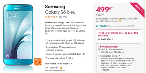 Grâce à la remise de 50€, le Samsung Galaxy S6 est en promo à :