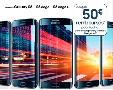 Samsung vous offre une remise différée de 50€ pour l'achat du Samsung Galaxy S6 ou encore sur le Samsung Galaxy S6 Edge et le galaxy S6 Edge + entre le 15 février et 31 Mars 2016. Cette promotion est valable dans les enseignes participantes, pour vous aider à choisir la meilleure formule avec un forfait sans engagement voici le prix de ces modèles chez les différents opérateurs mobiles.