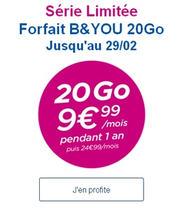 Promo : La Série Limitée B&You 20Go à 9.99€ par mois jusqu’au 29 février !