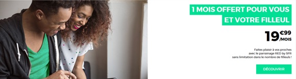Vous pouvez en parler sans aucune limite ! RED by SFR offre au parrain qui fera la promo auprès de son entourage d'une offre mobile ou Box, un mois d'abonnement à chaque création d'abonnement RED par son filleul.