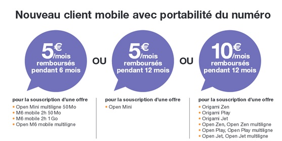 Pour bénéficier de ce bon plan, il vous suffit de souscrire à l'une des offres Orange décrites ci-dessous puis d'envoyer par Internet ou par courrier une copie de votre contrat mobile Orange (pour les forfaits Origami, M6 mobile, Open multiligne) ou de votre abonnement à une offre Open faisant mention d’une offre éligible à l’offre de remboursement et mentionnant la demande de portabilité du numéro dont la date de souscription est comprise entre le 11/02/2016 et le 06/04/2016.