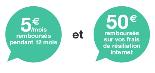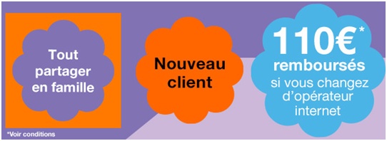Le fournisseur Orange vous permet de bénéficier de 110€ remboursés si vous changez d’opérateur Internet. Pour rentrer dans les détails, vous pouvez bénéficier de 5€ par mois remboursés pendant 12 mois et de 50€ remboursés sur vos frais de résiliation internet. Cette offre est réservée aux particuliers pour toute première souscription à une offre Livebox ou Open (ADSL ou Fibre) et pour toute résiliation d’une offre internet haut débit ou très haut débit d’un autre opérateur. Votre remboursement mensuel de 5€ ainsi que les 50€ sur vos frais de résiliation seront effectués sur votre facture Orange dans les 8 semaines suivant la réception complète de votre demande de remboursement.