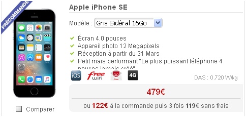 Depuis ce matin, vous avez la possibilité de précommander le nouvel iPhone SE chez l’opérateur Free Mobile. Ce nouvel iPhone dévoilé lundi soir lors de la keynote Apple est commercialisé chez cet opérateur à seulement 479€ ou 122€ à la commande puis 3 fois 119€ sans frais. Les frais de livraison s’élèvent 10€.