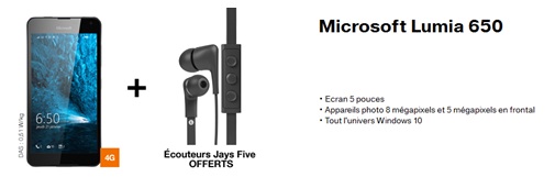 Microsoft Lumia 650 : Des écouteurs Jays Five offerts avec un forfait Orange