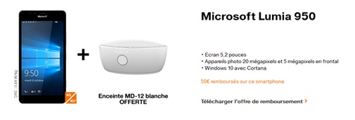 Microsoft Lumia 950 : 50 remboursés et une enceinte MD-12 offerte avec un forfait Orange