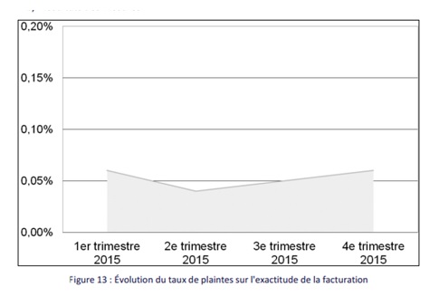 Chez Bouygues Telecom, au T4 2015 0.028% du parc clients est concerné par les plaintes liées à l’exactitude de la facturation.