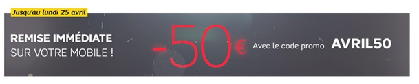 Vente Flash SFR : 50€ de remise immédiate sur votre mobile avec le code promo AVRIL50