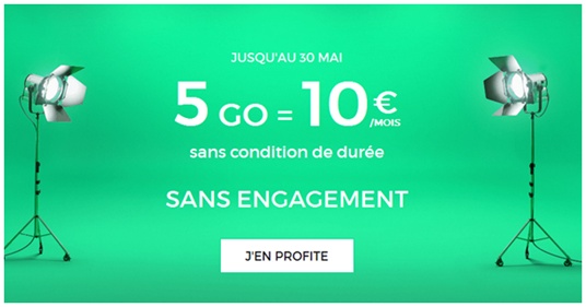 Depuis ce matin et jusqu’au 30 mai prochain, RED BY SFR vous propose le forfait illimité RED 5Go sans engagement de durée à seulement 10€ par mois à vie au lieu de 19.99€.
