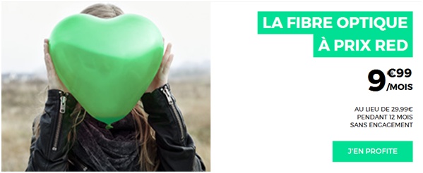 Pour moins de 10€ par mois, cet abonnement RED Fibre intègre un accès Internet très haut débit jusqu’à 100Mb/s. Vous bénéficiez aussi du téléphone illimité vers les fixes en France et vers les fixes de plus de 100 destinations internationales.