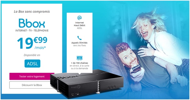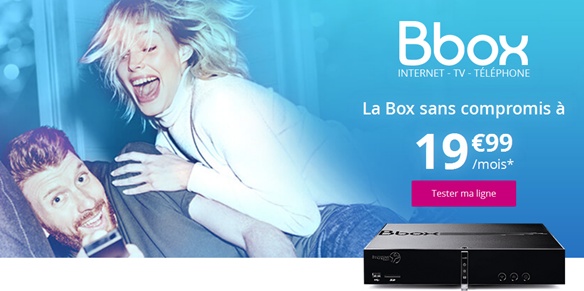 L’offre Bbox de Bouygues Telecom est proposée à 19.99€ par mois. Cette offre Bbox est soumise à un engagement de 12 mois. La location de la Box est facturée 3€ par mois.