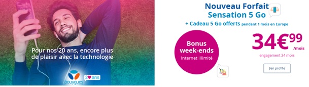 Bouygues Telecom féte ses 20 ans : un nouveau bonus Week-end Internet mobile illimité inclus !