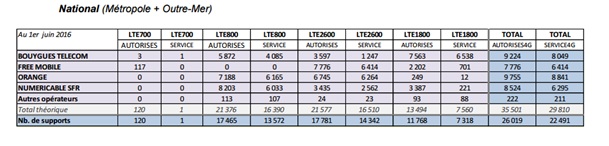 4G : 26 019 sites autorisés dont 120 dans la bande 700 MHz au 1er Juin 2016