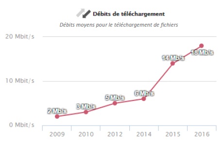 Cette enquête 2016 montre un accroissement continu des débits de l’internet mobile, grâce notamment au déploiement sur le territoire de la 4G. Les débits mesurés avec un terminal 4G sont désormais, en moyenne nationale, de 18 Mbit/s, contre 14 en 2015.