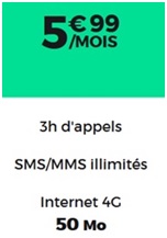 Si vous êtes à la recherche d’un petit forfait pour votre enfant ou pour un proche, vous pouvez opter chez RED by SFR pour le forfait RED Mini à 5.99€ par mois. Ce forfait sans engagement de durée comprend 3 heures d'appels 7j/7 et 24h/24 vers tous les opérateurs fixes et mobiles métropolitains. Au-delà des 3 heures, le prix de la minute est de 0,38€/min. Et si vous avez peur des dépassements tous les mois, l’opérateur RED by SFR vous propose l’option blocage du forfait pour 1€ de plus par mois soit votre abonnement RED Mini bloqué à 6.99€ par mois.