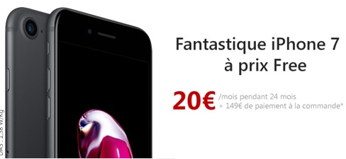 Si vous préférez acquérir l'iPhone 7 32Go, celui-ci est disponible chez Free au prix de 739€ en payant au comptant ou encore à 187€ à la commande puis 184€ 3 fois avec le paiement en 24 fois sans frais. Les frais d'envoi du smartphone sont facturés 10€ chez le quatrième opérateur. N'hésitez pas à comparer le prix de l'iPhone 7 avec ou sans abonnement via notre comparateur Smartphone.
