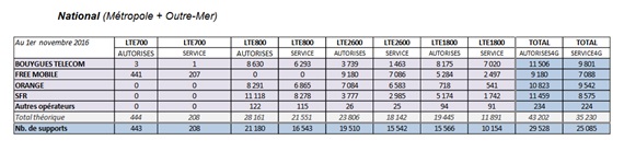 Un point sur le réseau 4G au 01 novembre 2016