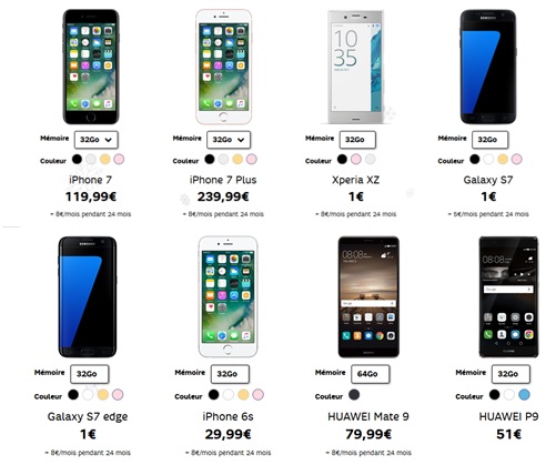 -L'iPhone 7 est disponible au prix de 119.99€ au lieu de 269.99€ puis 8€ par mois 24 mois ou encore à 311.99€ au lieu de 461.99€ après remboursement de 150€ en le payant au comptant