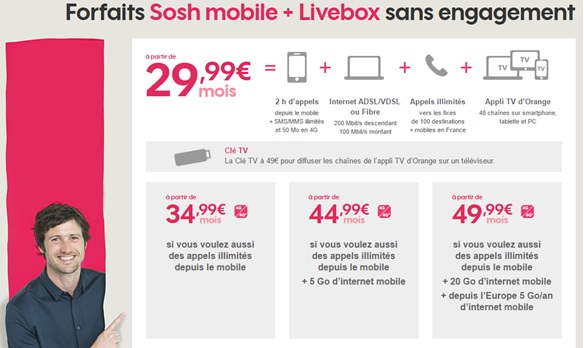 Les modalités des forfaits SOSH Livebox et mobile