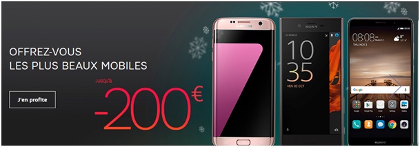 SFR prolonge jusqu'au 23 janvier prochain la réduction jusqu'à 200 proposée à Noël sur une sélection de Smartphones haut de gamme. Les réductions de 200€ ou 150€ selon le forfait SFR choisi s'appliquent sur l'iPhone 7 et iPhone 7Plus, iPhone 6s et 6S Plus ou encore les deux derniers modèles Samsung Galaxy S7 et Galaxy S7 Egde, le Huawei Mate 9 ou Huawei P9 et le Sony Xperia XZ, Xperia X et le nouveau Lenovo Moto Z ... Concernant les modèles Galaxy S7 et Galaxy S7 Edge, le constructeur propose une nouvelle promotion de 100€ valable entre le 02 janvier 2017 et 28 février prochain.