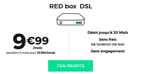 En plus de profiter du Très Haut Débit en mobilité avec votre forfait mobile RED 5Go, vous pouvez aussi passer à la vitesse supérieure chez vous grâce à l’offre RED Box Fibre. Cette offre RED Box Fibre est actuellement proposée à 9.99€ par mois et ce pendant une année au lieu de 19.99€ (sans engagement de durée).