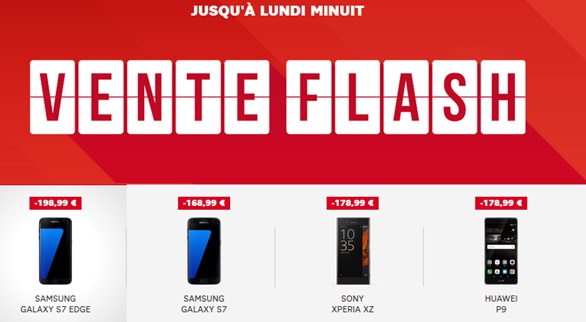 Vente flash SFR : Galaxy S7, Galaxy S7 Edge, Xperia XZ et Huawei P9 en promo