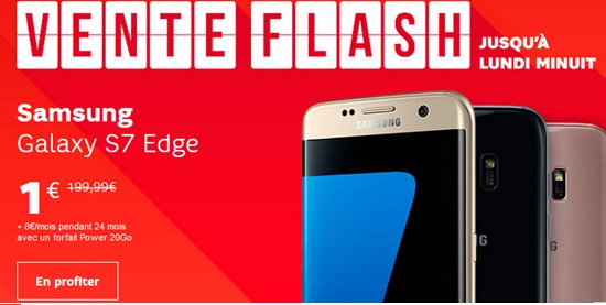Pour l'achat du Samsung Galaxy S7 Edge au comptant avec le forfait SFR Power 20Go, vous profitez ce week-end :