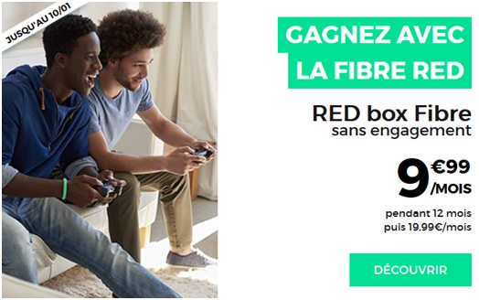 Il vous reste peu de temps pour profiter de l’offre promotionnelle de l’opérateur RED BY SFR. Plus précisément, jusqu’au 10 janvier inclus, cet opérateur commercialise son offre Box RED à seulement 9.99€ par mois pendant 12 mois puis 19.99€ par mois sans frais de location de box. Autre avantage, cette offre RED est disponible sans engagement de durée, vous pouvez donc résilier à tout moment votre abonnement. RED by SFR commercialise aussi son offre RED Box en ADSL ou VDSL à seulement 9.99€ par mois au lieu de 19.99€ pendant 6 mois.