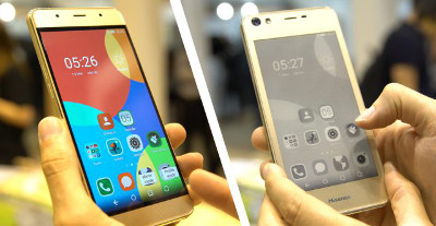 Le second écran de 5,2 pouces est radicalement différent puisqu’il s’agit d’un écran à encre électronique pourvu d’une définition de 960 x 540 pixels. Cet écran dit E-Ink permettra une utilisation en fonction liseuse, mais ce n’est pas tout, il aura pour avantage, via des widgets, de connaître l’heure, la température ou même le cours de ses actions sans être obligé de retourner à l’écran principal, il sera aussi possible d’y afficher la page d’accueil de son Smartphone et de l’utiliser de manière identique à l'original. Ce deuxième écran a principalement comme atout de ne consommer que très faiblement de l’énergie. Par ailleurs, le constructeur Chinois a inséré un mode autoportrait à l’E-Ink permettant d’utiliser le capteur de 16 Mpx et non celui de 5 Mpx pour ainsi mieux cadrer ses selfies et obtenir un meilleur rendu.