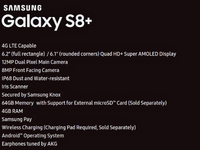 Ce flagship devrait embarquer un écran Super AMOLED Quad HD+ de 6,2 pouces et environ 2560 x 1440 pixels. Avec son écran borderless, le Galaxy S8 intègrerait 4 Go de mémoire vive et 64 Go d’espace de stockage qui peut être étendu grâce à une carte microSD. Côté photo, le S8 Plus profiterait d’un capteur « Dual Pixel » de 12 mégapixels situé sur la face arrière de l’appareil ainsi que d’une caméra en façade de 8 mégapixels. En terme de connectivité, ce futur terminal Sud-Coréen devrait être compatible 4G LTE et être résistant à l’eau et à la poussière grâce à la norme IP68. Par ailleurs, le Galaxy S8 Plus possèderait le Samsung Pay, un scanner d’iris à l’avant du mobile et la recharge sans fil.