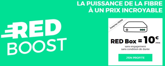 RED BY SFR a décidé de prolonger la promo sur son offre Internet jusqu'au 06 juin prochain. Vous pouvez ainsi équiper votre foyer d'un accès Internet maison sans TV en trés haut débit à seulement 10€ par mois ou encore à 12€ avec la TV. Ce prix mini est valable quelle que soit la zone géographique et sans condition de durée. La RED BOX est ainsi proposée au prix de 10€ par mois par ADSL, VDSL, THD ou Fibre. Autre atout, cette abonnement Internet pas cher est sans engagement et sans frais de location de box. Et dans le cadre d'un changement de fournisseur d'accès à Internet, l'opérateur vous rembourse jusqu'à 100€ vos frais de résiliation.