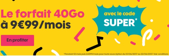 SOSH lance à compter d'aujourd'hui et ce jusqu'au 22 juin une promo sur son forfait illimité avec 40Go de data. L'opérateur 100% en ligne d'Orange vous offre en effet une remsie mensuelle de 15€ par mois pendant un an avec le code promo SUPER. La formule avec appels, SMS et MMS illimités et une enveloppe de 40Go par mois sur le réseau numéro 1 est ainsi proposée au prix de 9.99€ au lieu de 24.99€ par mois. Cette offre promotionnelle n'est pas valable pour les clients Orange et SOSH. La carte SIM est facturée 5€ à la commande ou incluse avec l'achat d'un nouveau mobile.