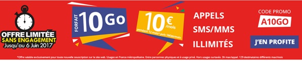 Auchan Telecom propose une série limitée en exclu Web avec 10Go de data à 10€ par mois pendant 12 mois puis 16.99€ par mois. Cette offre spéciale est disponible jusqu'au 06 juin et pour bénéficier de la remise de 6.99€ par mois la première année, vous devez indiquer le code promo A10GO lors de la commande. Ce MVNO appartient au groupe Euro-Information Telecom qui dispose d’un accord pour utiliser le réseau mobile des 3 opérateurs Orange, SFR et Bouygues Telecom. Cet avantage vous permet ainsi de profiter de votre mobile partout en France en optant pour un forfait Auchan Telecom. La carte Sim est facturée 5€ et gratuite en cas d’achat concomitant d’un mobile.