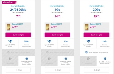 Le Galaxy J5 2017 à 249€ nu ou avec un forfait B&You de Bouygues Telecom