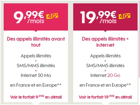 Les deux autres formules SOSH avec appels illimités dès 9.99€ par mois