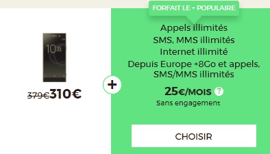 Pour profiter des fonctionnalités de ce mobile Sony intelligent et performant, vous pouvez opter pour le Black Forfait avec Gigas illimités au prix de 25€ par mois jusqu'au 04 décembre ou encore la série limitée RED 30Go à 10€ par mois à VIE jusqu'au 26 décembre. Ces deux offres sont sans engagement de durée.