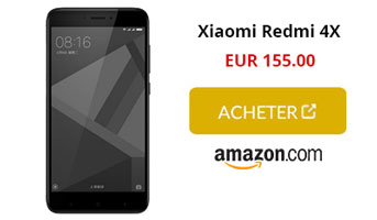 Le Xiaomi Redmi 4X repose sur un écran IPS de 5 pouces d’une définition de 1280 x 720 pixels. C’est un SoC Snapdragon 435 de Qualcomm qui permet de faire tourner ce téléphone chinois. Ce Chipset octo-core se compose de huit Cortex-A53 cadencés à 1.4 GHz et est assisté d’un GPU Adreno 505 et épaulé par une mémoire vive de 2 à 3 Go en fonction des modèles. Sa mémoire interne se décline de 16 à 32 Go selon les versions et est extensible jusqu’à 128 Go via une carte microSD. Sa batterie offre une capacité de 4100 mAh et est compatible avec la Quick Charge. Son appareil photo intègre un capteur de 13 mégapixels situé au dos de l’appareil. Cet objectif ouvrant à f/2.0. est muni d’un autofocus à détection de phase et d’un flash LED. A l’avant, nous retrouvons un capteur de 5 mégapixels avec focale fixe et objectif ouvrant à f/2.2. De plus, ces deux capteurs sont capables de filmer à 1080p à 30 images par seconde. Le Xiaomi Redmi 4X est animé par Android 6.0.1 Marshmallow et vendu par Amazon au prix de 155 euros.